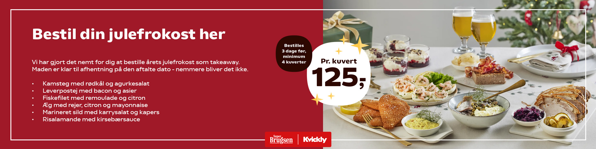 Skal bestilles senest 2 dage før - eller ring for at bestille på 86 48 35 11.